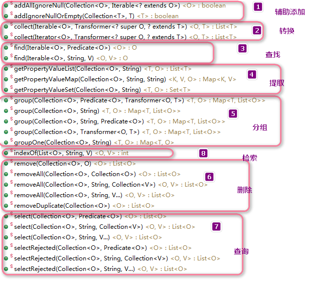 在我们日常开发工作中, 大部分时间其实都是在和 JAVA集合框架打交道,对集合框架使用溜的话,会非常快捷,下面特别封装十分常用的方法